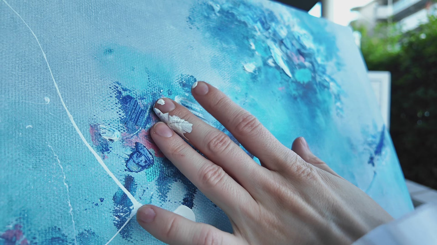 I often paint with my fingers, which allows me to feel the movement and flow of energy more directly when I create.